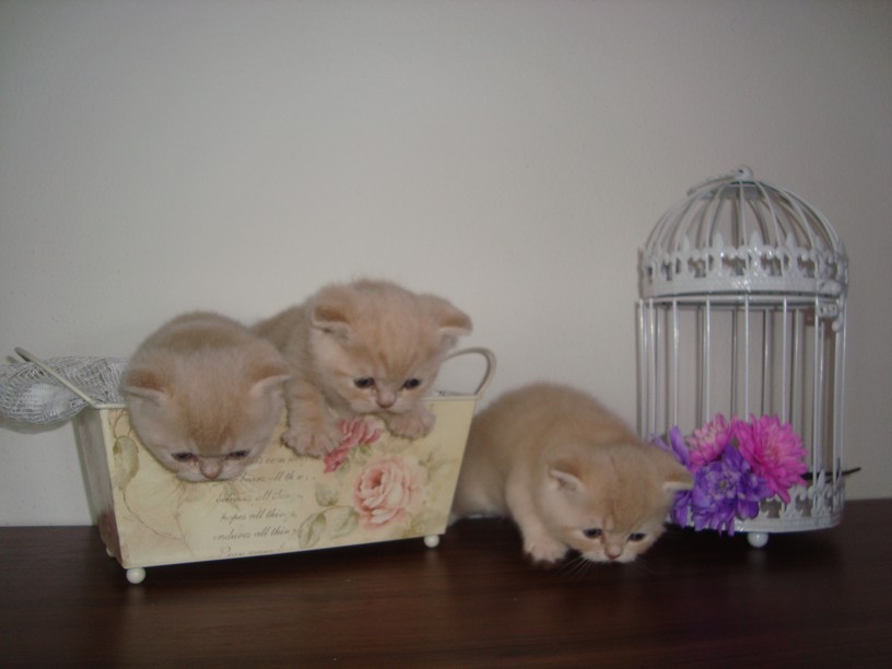Představuji Vám naše krásné drobečky ve věku 1 měsíce: Aninka, Andrew a Archie jsou živá, zvědavá koťátka a je s nimi opravdu velká legrace. Už začínají vykukovat z pelíšku a dumají, jak přelézt tu zátarasu, která jim v tom brání :)